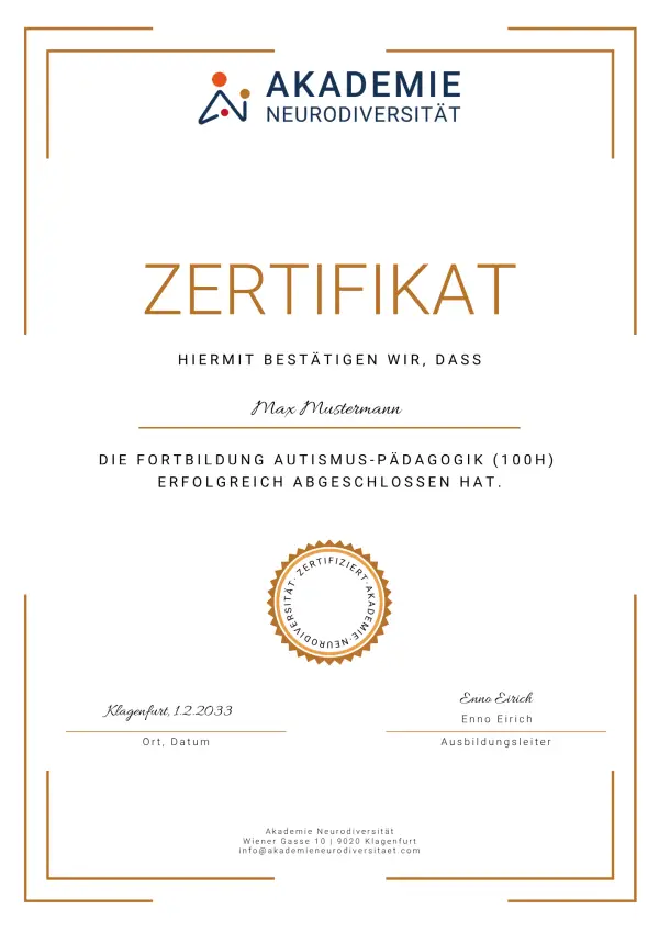 - Zertifikat in Autismus-Pädagogik nach erfolgreichem Abschluss